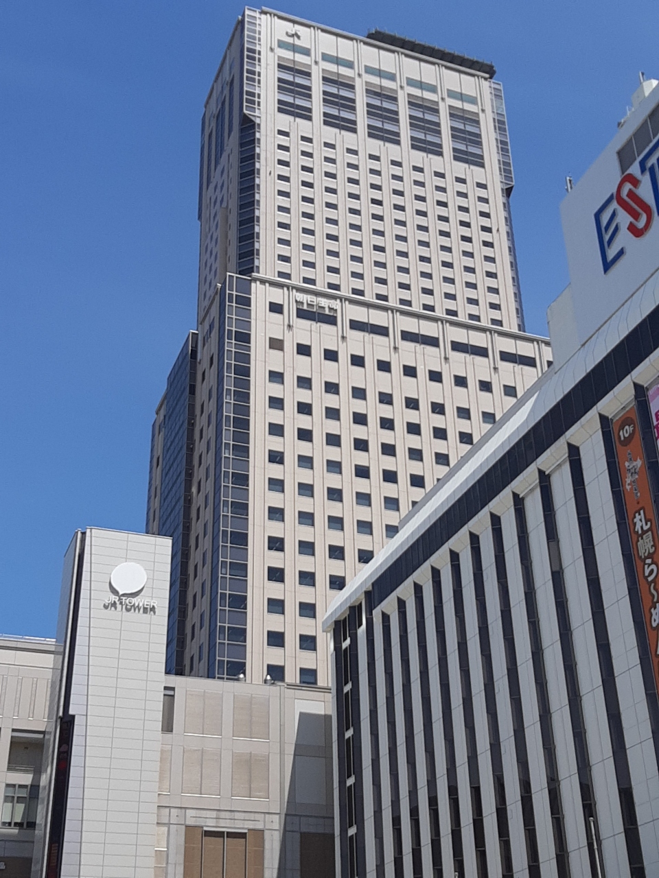 JR札幌駅は、ビルがずら~っと壁のように建ち並んでいます。 その中でひときわ高いのが、JRタワーです。 駅構内と直結、地下2階、地上38階で、北海道で一番高いビルだそうです。