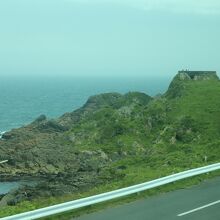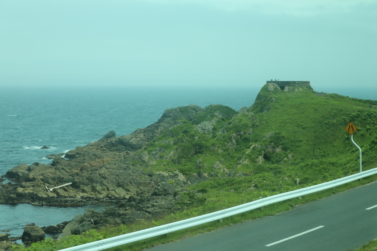 種差海岸につきでた展望台です。石造りのクラシックな外観で、元は日本軍の施設で戦争遺構でもあります。八戸線の車窓からも一瞬ではありますが、眺めることができます。天気はくもりに加え、色の入った窓ガラスでイマイチでした。
