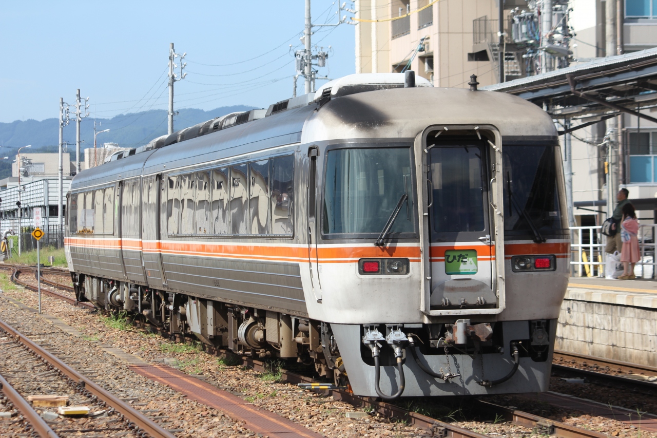 高山線の特急列車です。22年7月から一部の列車にハイブリッドの新型車両HC85系が導入されましたが、乗車したのは従来のキハ85系でした。大型窓のワイドビュー車両で車窓も存分楽しめました。将来的にはすべての列車が新型車両に置き換わる予定です。