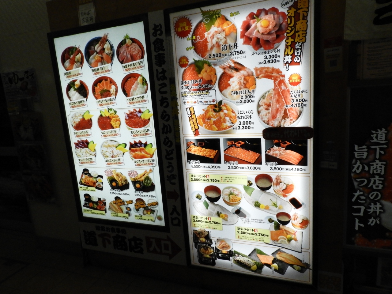 この「どんぶり横丁市場」は、水産物地方卸売市場から近いので、新鮮な海鮮料理を売り物にする20店近くの食堂が並んでいます。函館駅から歩いても5分もかからないので、至便の立地です。