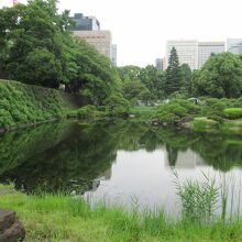 1903年に日比谷公園が開園した時からある心字池です。江戸城の日比谷見附の石垣を残し、江戸園芸の名残の黒ボク石組の池です。設計案に石垣からの身投げ名所になっては困ると注文がつき、直接飛び込めないように石垣下に地面を張り出したそうです。当初は池の中に鳥の噴水がありましたが、今はありません。池を囲む手入れされた松やツツジなどの低木がきれいで、落ち着いた雰囲気の池です。石垣の上から眺めることができます。