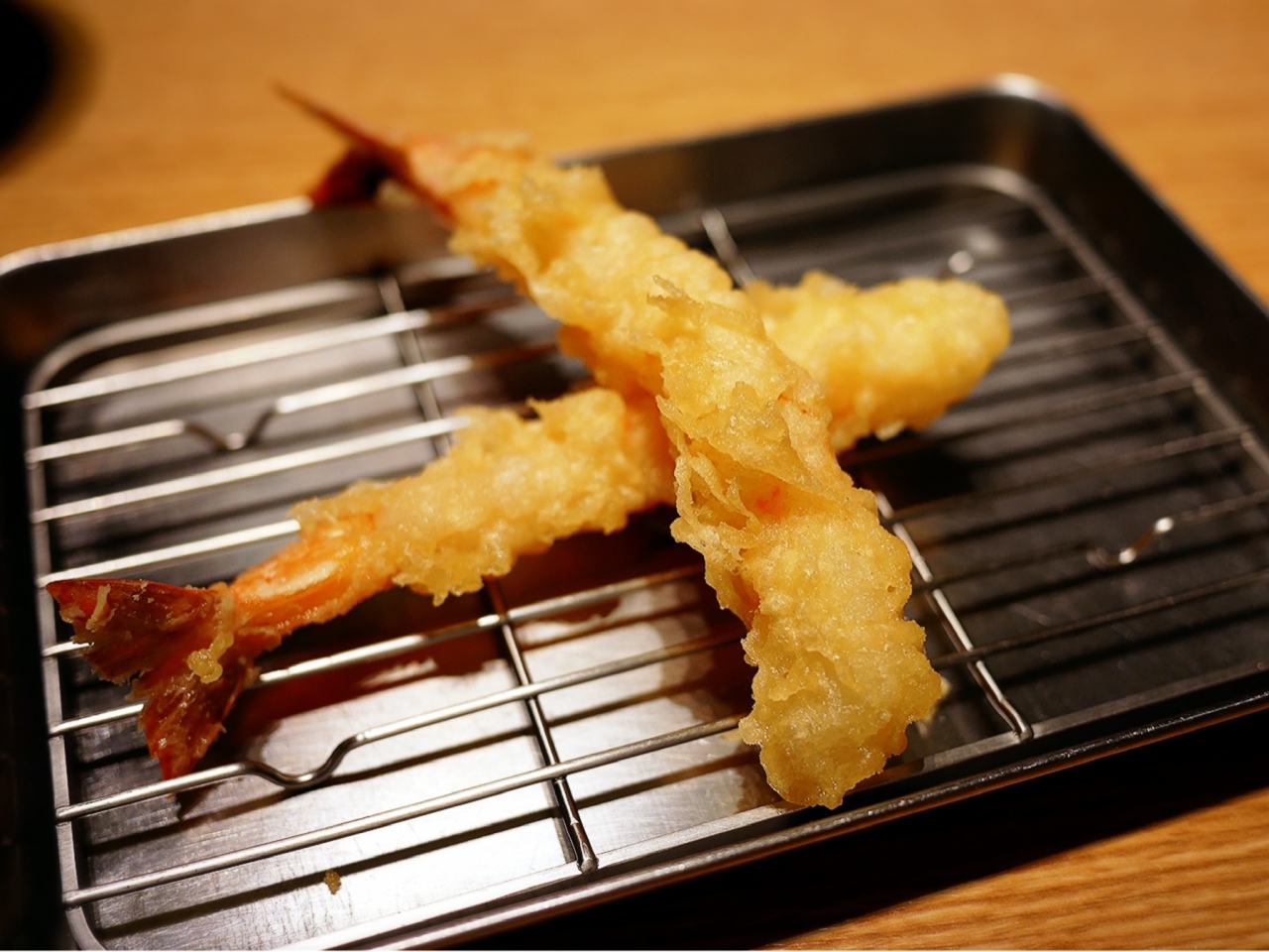 相変わらず、海老天がレアな仕上がりで、旨味と甘みが強くて、美味しいですね。主に、塩とわさび塩で頂きました。