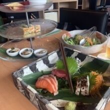 料理8品飲み放題のコース+おすすめ刺身盛り合わせで予約。