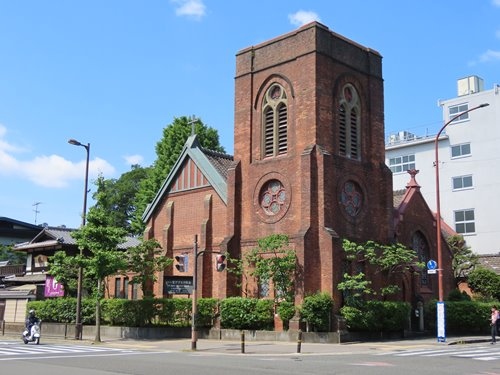 日本聖公会の教会です。1898年(明治31年)に建てられました。どこかでこうした煉瓦造りの教会を見たような気がして記憶をたどったら、青森県弘前市の被昇天教会を思い出しました。同じJ・M・ガーディナーが設計にかかわった建物でした。
