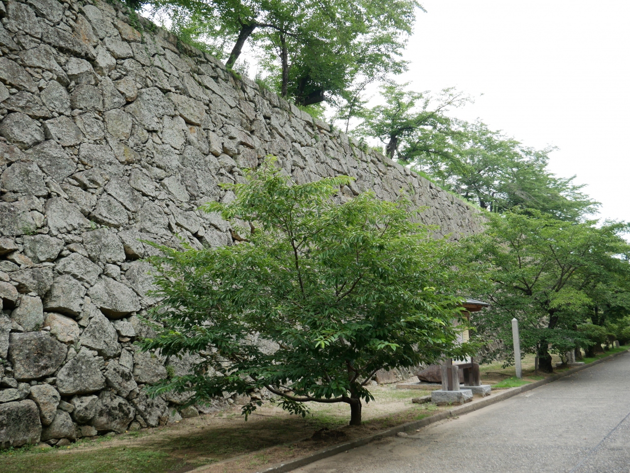 平山城ということで、平地にありながら、天守は少し小高い位置に建っていたようです(現存していません)。なんといっても、石垣が見事な城跡でした。