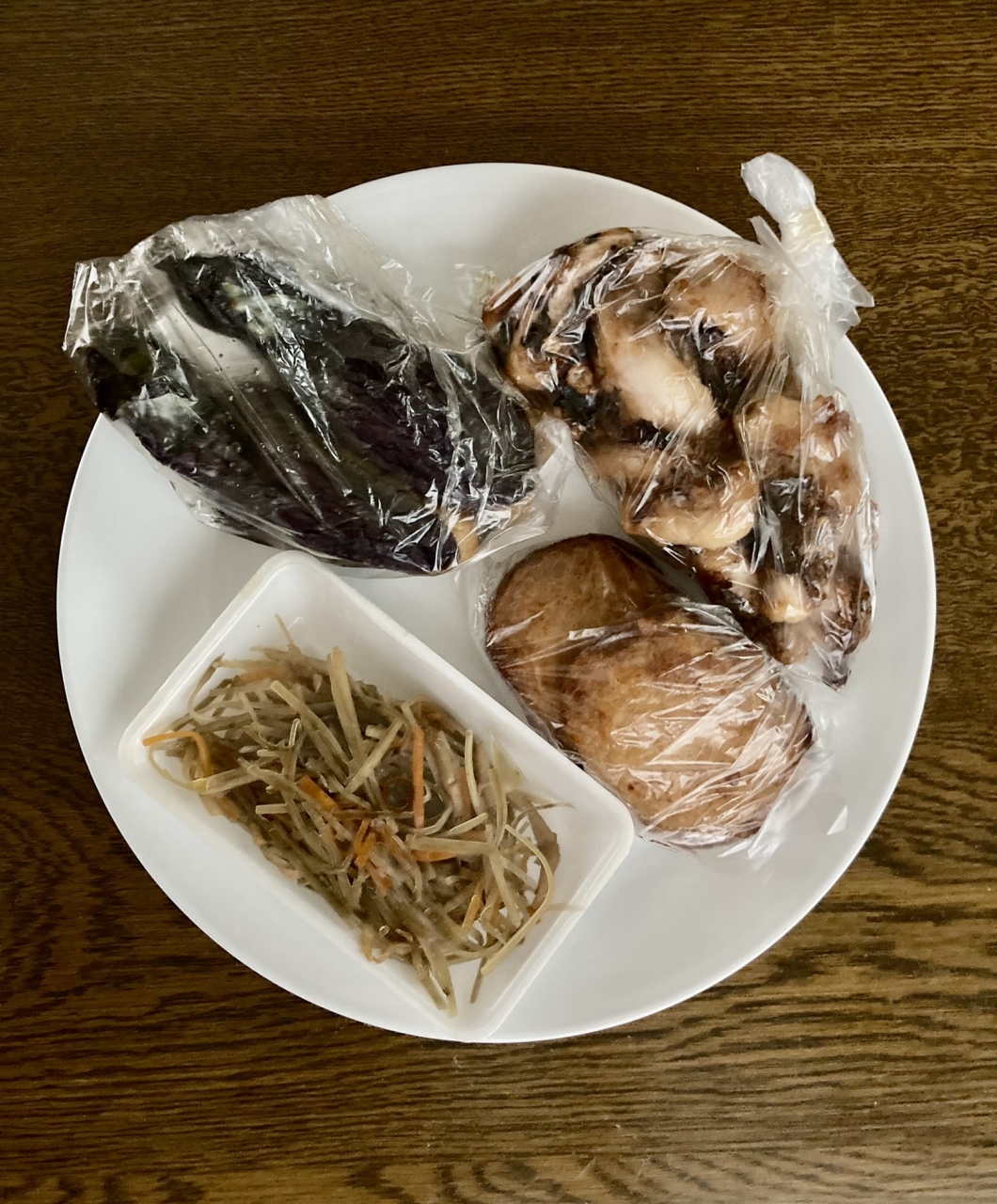 今回は自分が食べたいと思った品を購入しました。ナスの挟み揚げ、レンコンのさつま揚げ、きんぴらごぼう、いか下足揚げ。どれも安定の美味しさでした。特にいか下足揚げは、柔らかくてさっぱりした味付けでとても美味しくいただきました。
