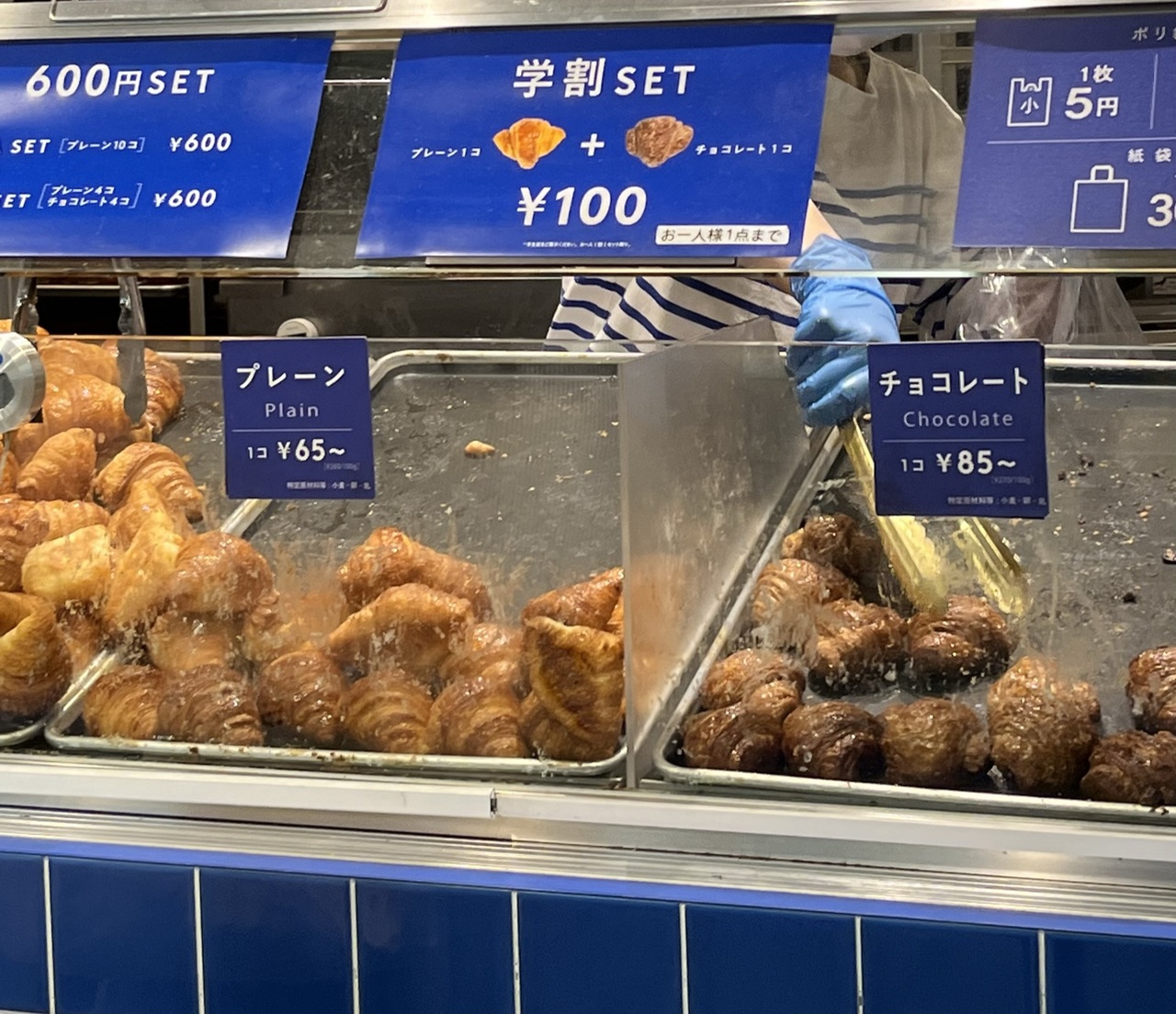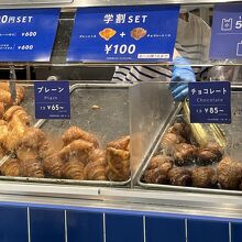 〈学割セット〉もあります。プレーン1コ+チョコレート1コ ¥100です。