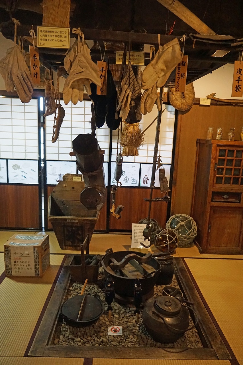 元々この場所に立っていた建物ではなく移築されたものです。本来であれば鰊番屋がこのような高台に建てることはあり得ません。小樽市内からバスで行く場合は祝津港でバスを降りますが、おたる水族館への曲道の角には古い鰊御殿が残されています。本来はこのような場所に建つものですから立地を確認して奥には良いと思います。鰊番屋はその先にも1軒残されています。北海道開拓の村に残されている旧青山家の鰊御殿も当初はこの海岸線にあったようです。高台までの最後の上りは結構きついですが、登った後は周囲の絶景を楽しむことが出来ます。番屋としては小さいですが、小さいなりの工夫が凝らされていて面白いです。面白いと思うには開拓の村や他の番屋を見ておく必要があると思います。館の中の展示はかなり細かいものまで並べられ、ニシンを背負う子供用の畚(もっこ)は初めて見ました。最低でも近隣にある旧青山別邸と合わせて見学したいところです。可能であれば北海道開拓の村の見学もおすすめです。