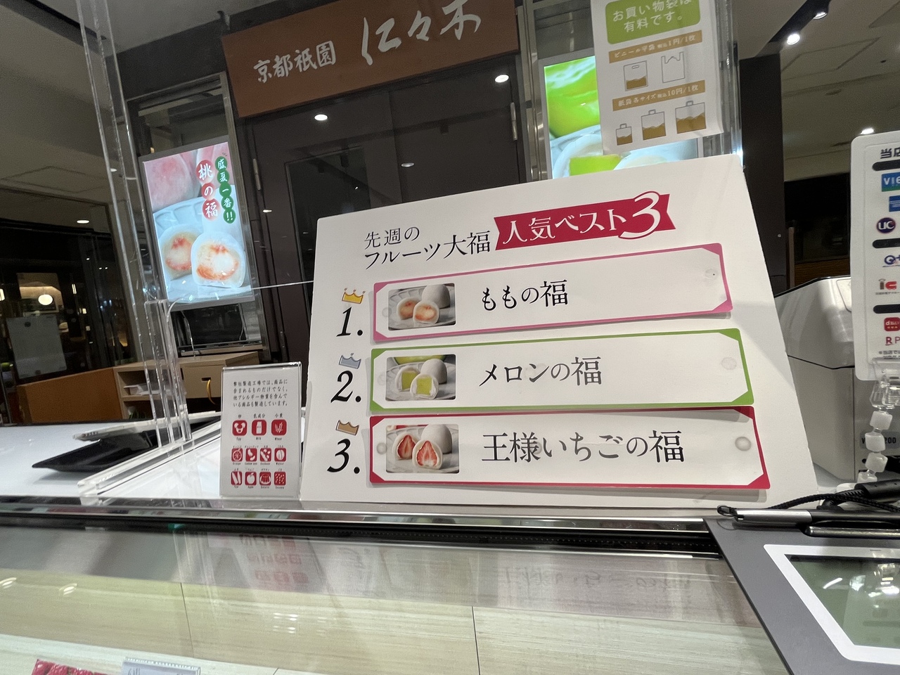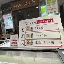 先週のフルーツ大福 人気ベスト3が 店内に 貼り出されていました。