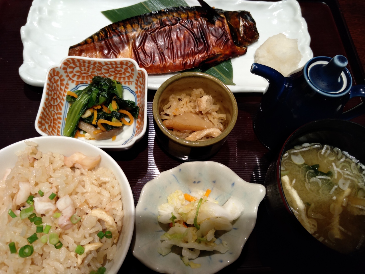 大かまどの炊きたてごはん・こだわりの白米 ・雑穀ご飯 ・季節の炊き込みご飯がランチ食べ放題。いまは炊き込みはタコの炊き込み、雑穀はトウモロコシでした。