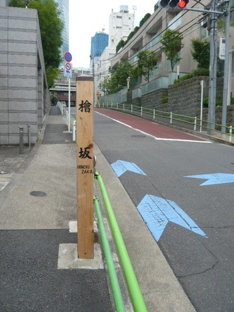 檜坂は、東京ミッドタウンや港区立檜町公園の東側にあり、南北に走る傾斜の急な坂です。