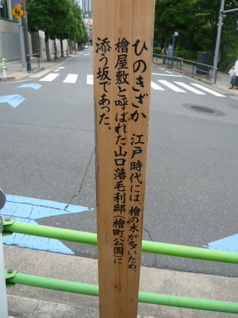 檜坂の名称の由来は、毛利藩の屋敷が檜屋敷と呼ばれ、隣接する坂が檜坂と呼ばれたからでした。