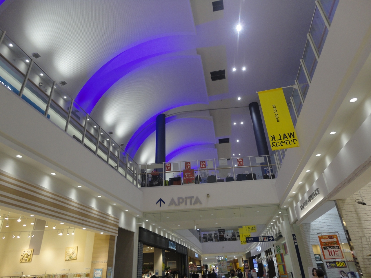 大垣駅は南側に街が広がっていて、北側は再開発エリアのようです。駅を出るとすぐ目の前で、歩道橋で繋がれていますが、意外と遠く感じました。建物は2階建てで、北側はアピタが入っていました。食料品だけでなく、2階はカジュアルな衣料品も多く、専門店が充実していない子供やシニア向けの商品も多くて、便利そうでした。