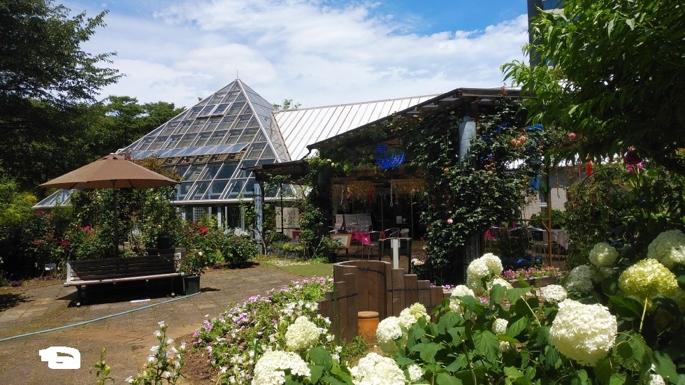 多摩センター駅から徒歩10分くらいのところにある施設。小規模ながら温室と屋外には庭園風のレイアウトに植物が生い茂っている。6月下旬の時期はアジサイの花など季節の花を楽しむことができた。