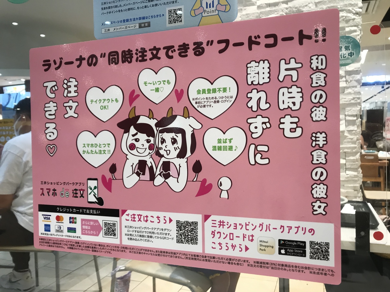 フードコートは、席からモバイルオーダーもできて非常に便利でした。