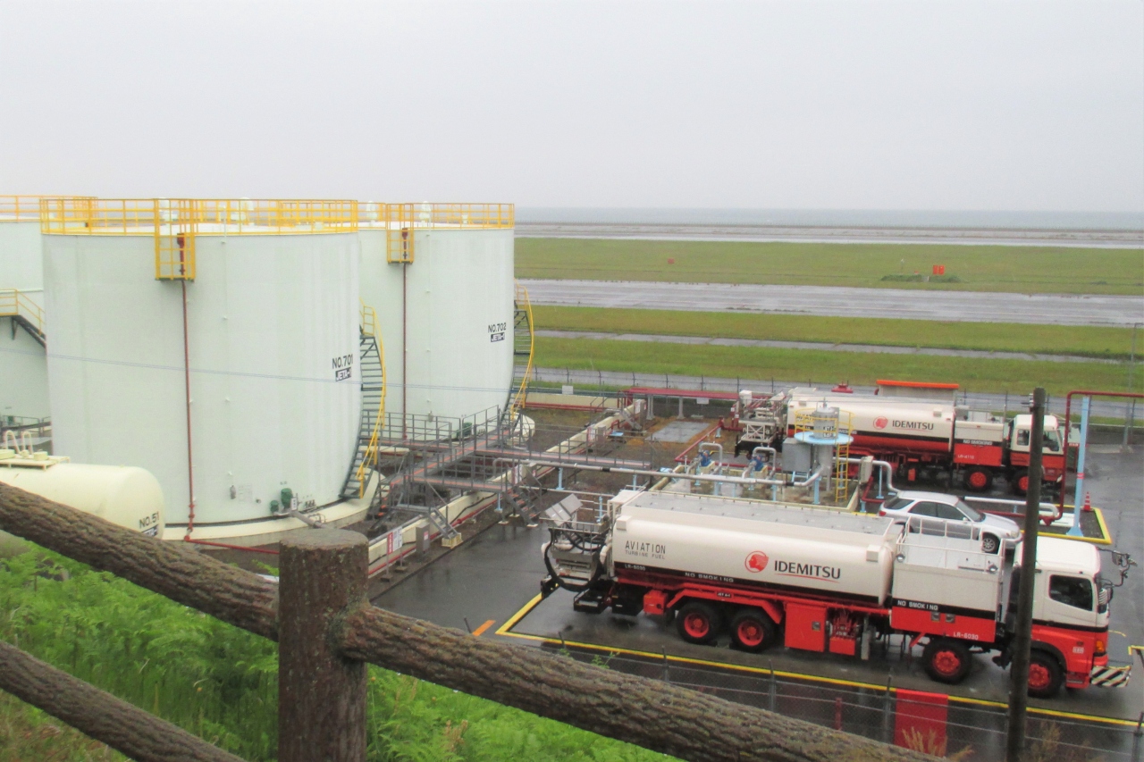 空港展望公園は大分空港ターミナルビルのすぐ北のところにありました。目の下には、航空機燃料の貯蔵所がありました。空港全体を見渡せる訳ではありませんが、飛行機の離着陸風景は見ることが出来ました。但し、羽田や福岡の様な主要空港であれば、ひっきりなしに飛行機の離着陸が見られますが、ここでは時刻表が必要なくらいでした。