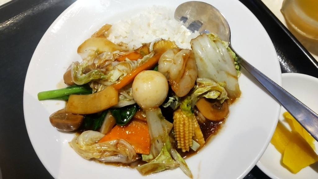 料理とご飯の組み合わせもいいけど、ラーメンと半中華丼のセットがある。