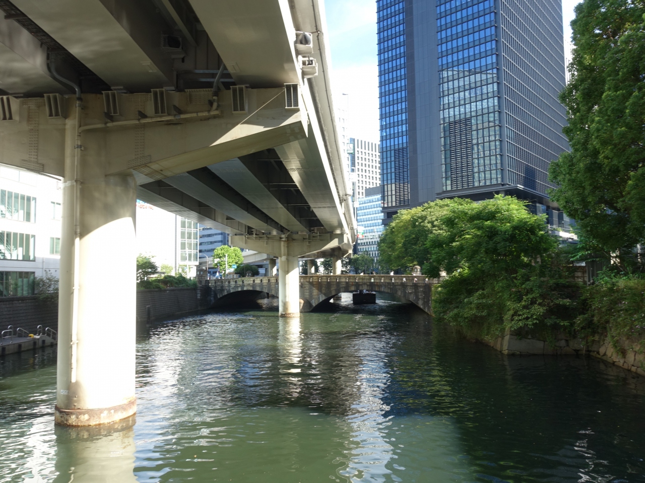 日本橋の日銀の近く、日本橋川に架かる車の通りの多い橋が常盤橋です。関東大震災後の復興計画で造られた重厚な石橋です。上流側には、長い間工事が行われている橋がありました。こちらが歩行者専用の常磐橋で、今回訪問したら工事が終わりきれいな橋ができていました。「常盤橋門跡」内にあった常磐橋で、東日本大震災によりダメージを受けたため、補修工事が行われいたようです。