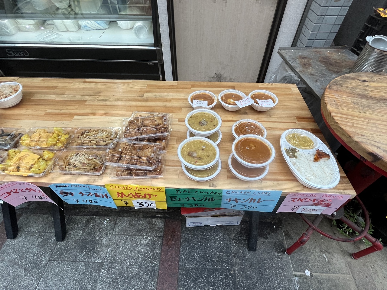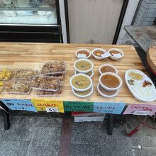 メニューは「豆とチキンカレー」「チキンカレー」スペシャル弁当」「からあげ」「ペッパーチキン」など