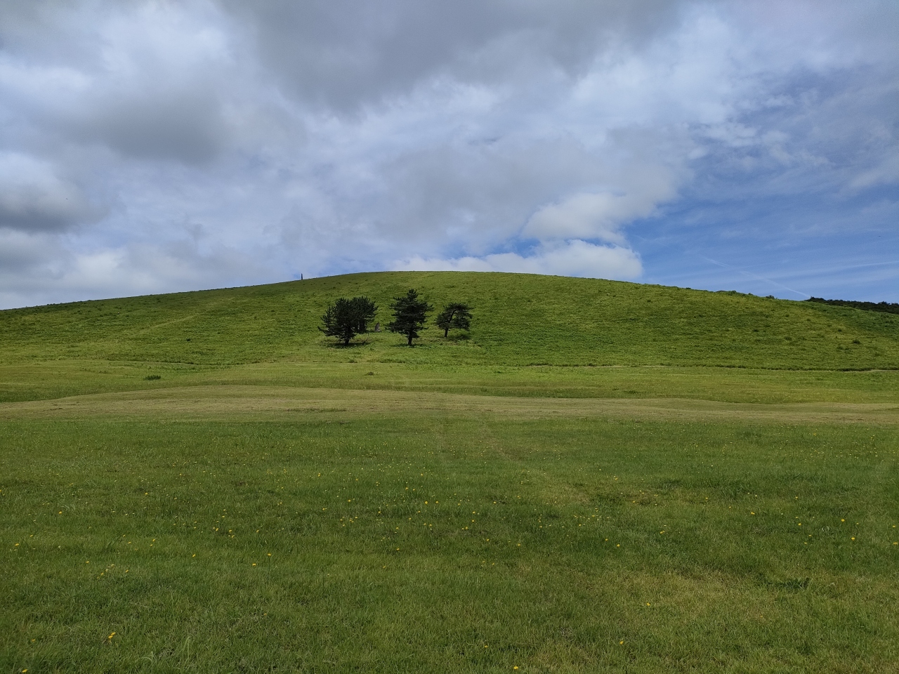 特に山頂付近に、観光を意識してかよく植えられているほか、途中の道路上から眺めると、眼下の山肌の緑の草原にポツポツと白い花が見えて、日本海を望む広大な景色をバックに趣がありました。