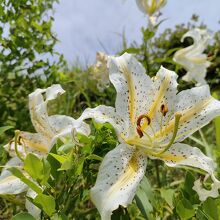 7月中旬~8月上旬は山肌に白いヤマユリの花が咲きます。