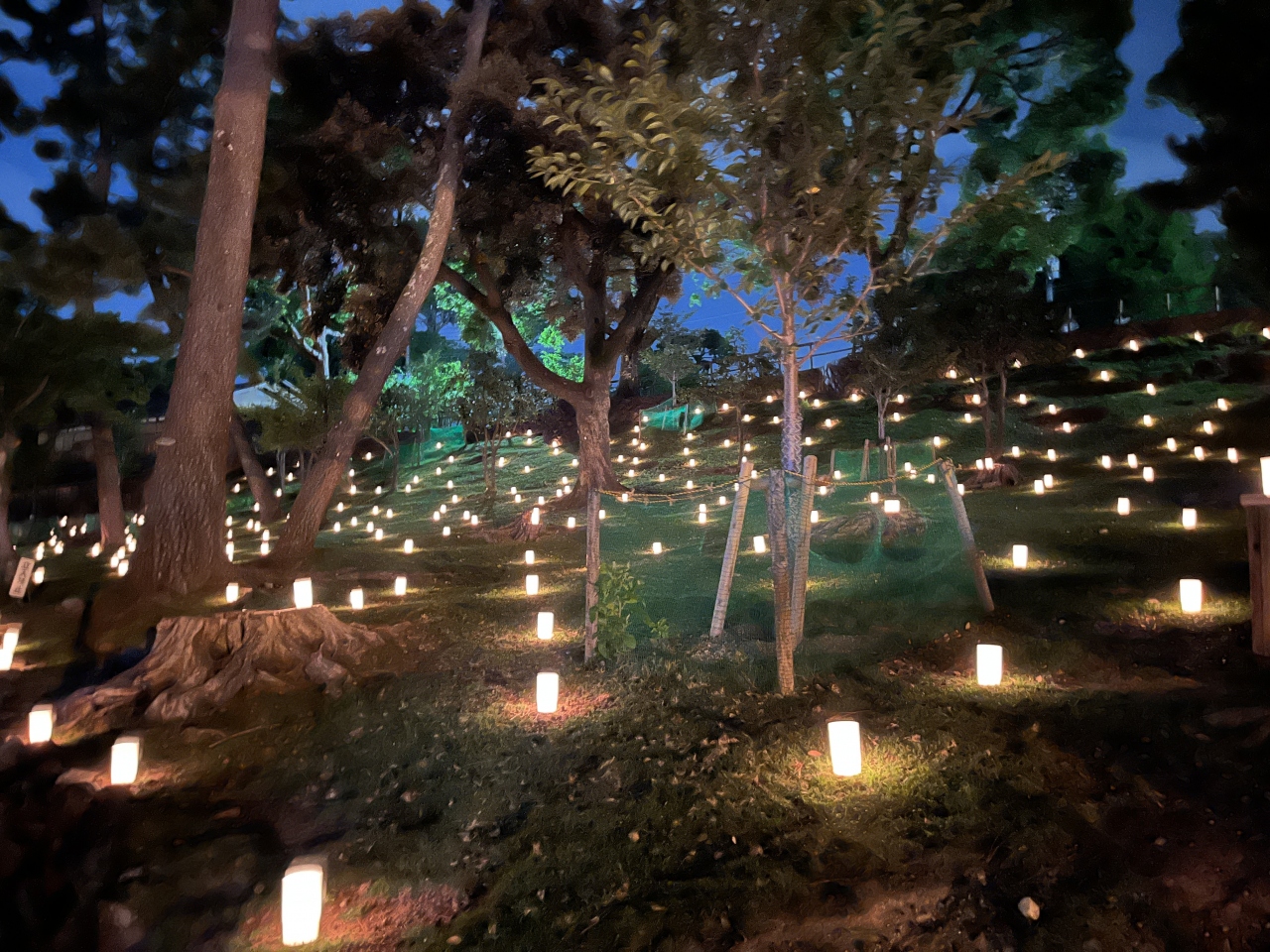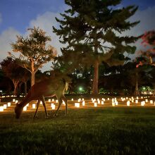 感染症の影響で中止になっていた「なら燈花会」が再開されたということで行ってみました。奈良公園一帯がキャンドルライトで彩られる幻想的なイベントです。土曜日の夕方に行きましたがなかなかの人出でした。浴衣で来ている人も見かけましたが、会場が広範囲なので下駄だと歩くのが大変そうでした。また、会場内は歩行者も一方通行に制限されているところがあるので、事前にルートを確認して行くことをおすすめします。