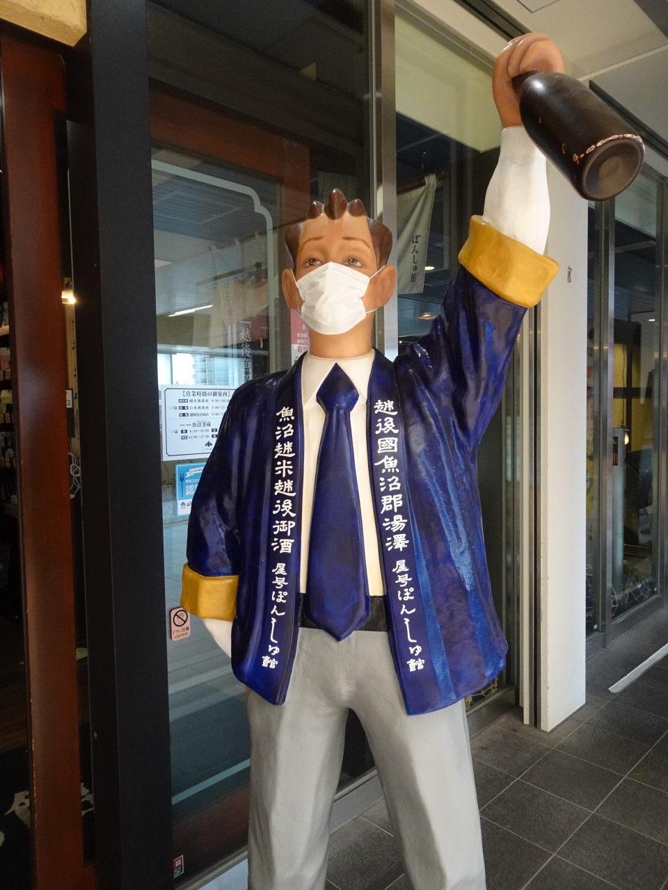 駅を取り囲むようにフロアが広がり、飲食店・土産店のほか、雑貨やコンビニ、100円ショップに家電量販店など多くの店が軒を連ね、ここにいるだけで多くの用が済んでしまうようなラインアップです。観光客としては、帰りの新幹線乗車前にお土産を選んだり、弁当などの食料を調達するのにとても便利。地酒の店が目立つのも新潟らしさを感じます。