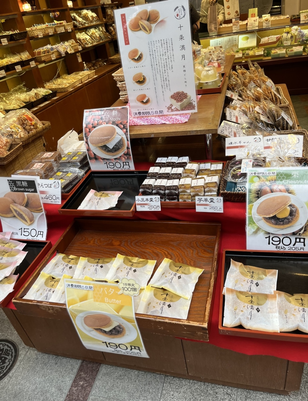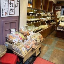 「羊羹」「きんつば」「わらび餅」「鈴かすてら」「おかき」などなど…が並んでいます。