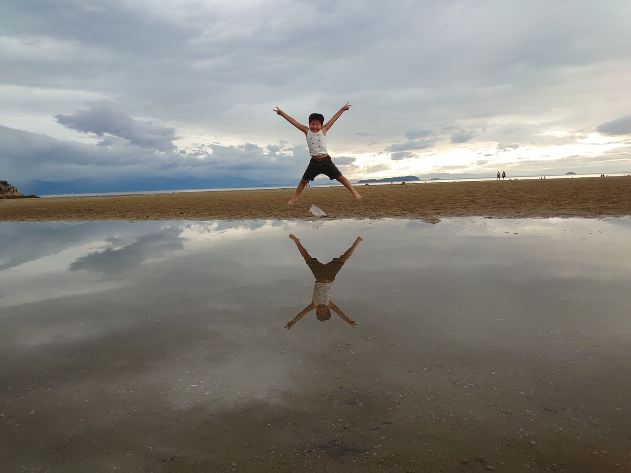 干潮時に砂浜に残る潮だまりが鏡のようになり、ボリビアのウユニ塩湖のような写真が撮影できるスポットとして最近テレビで見て訪れました