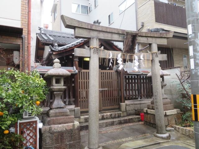 名前もよく似ているので、すぐそばの菅大臣神社の末社にあたるのでしょうか?ただこちらには、道真公のお父様が祀られているそうです。鳥居の札には、「紅梅殿」という別名が書かれています。小さいながら、格式の高さが感じられました。、