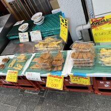 店先には 「アジフライ」「カキフライ」などのお惣菜が 並んでいました。