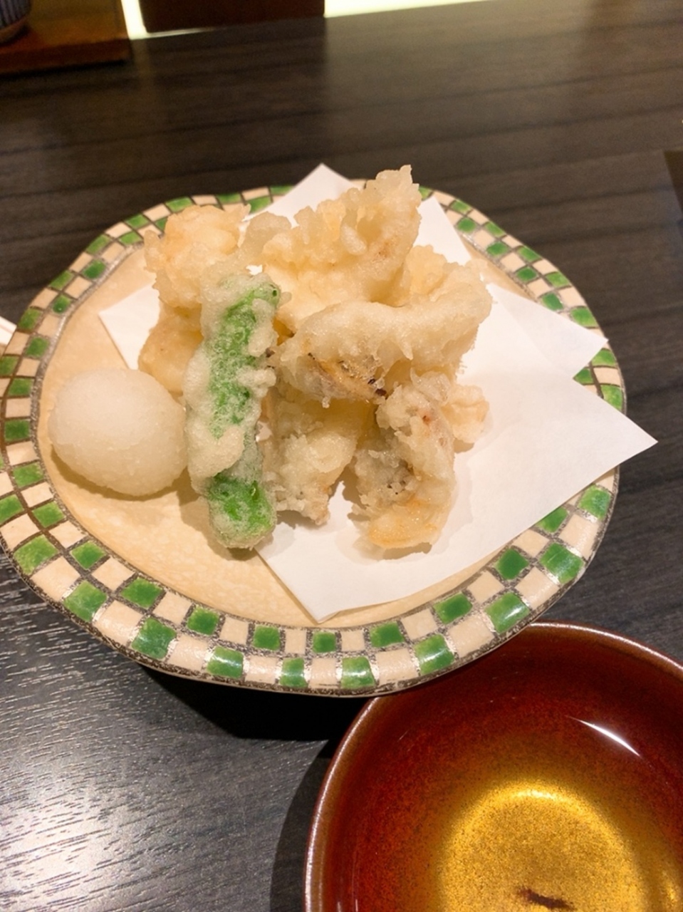年末の佐賀の呼子旅行以来ハマってる、イカゲソの天ぷらもオーダーしましたが、めっちゃ美味しかったです。