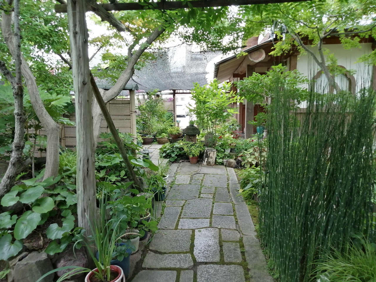 入口がどこだか分からずうろうろしてしまいましたが北側(八幡通り交差点側)に山門があります。山門をくぐると住宅街の中にあるとは思えないほど緑があふれていてとても気持ちのよい空間でした。民家の庭のよう。本堂もお寺らしくなく、まるで住宅のような感じでした。