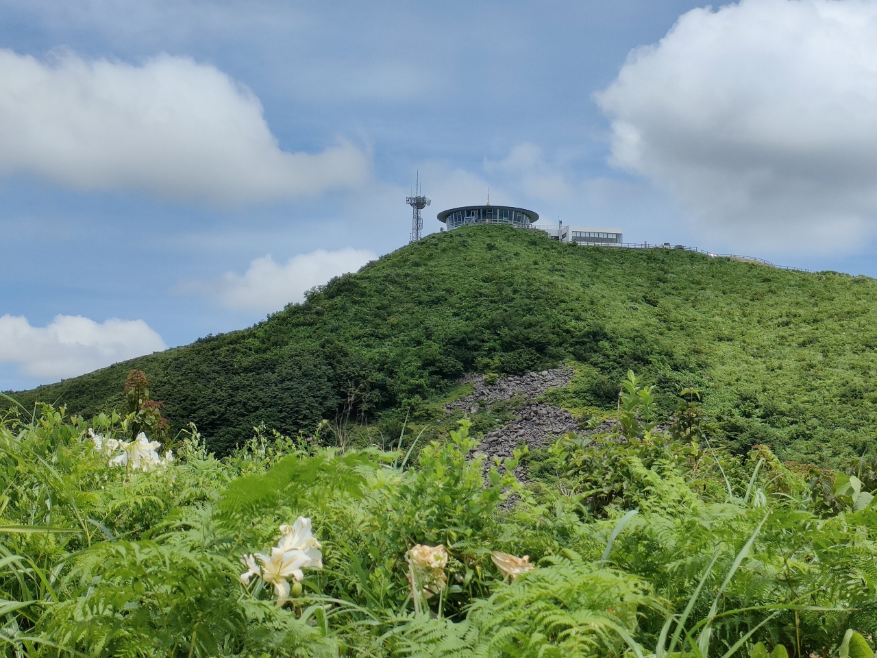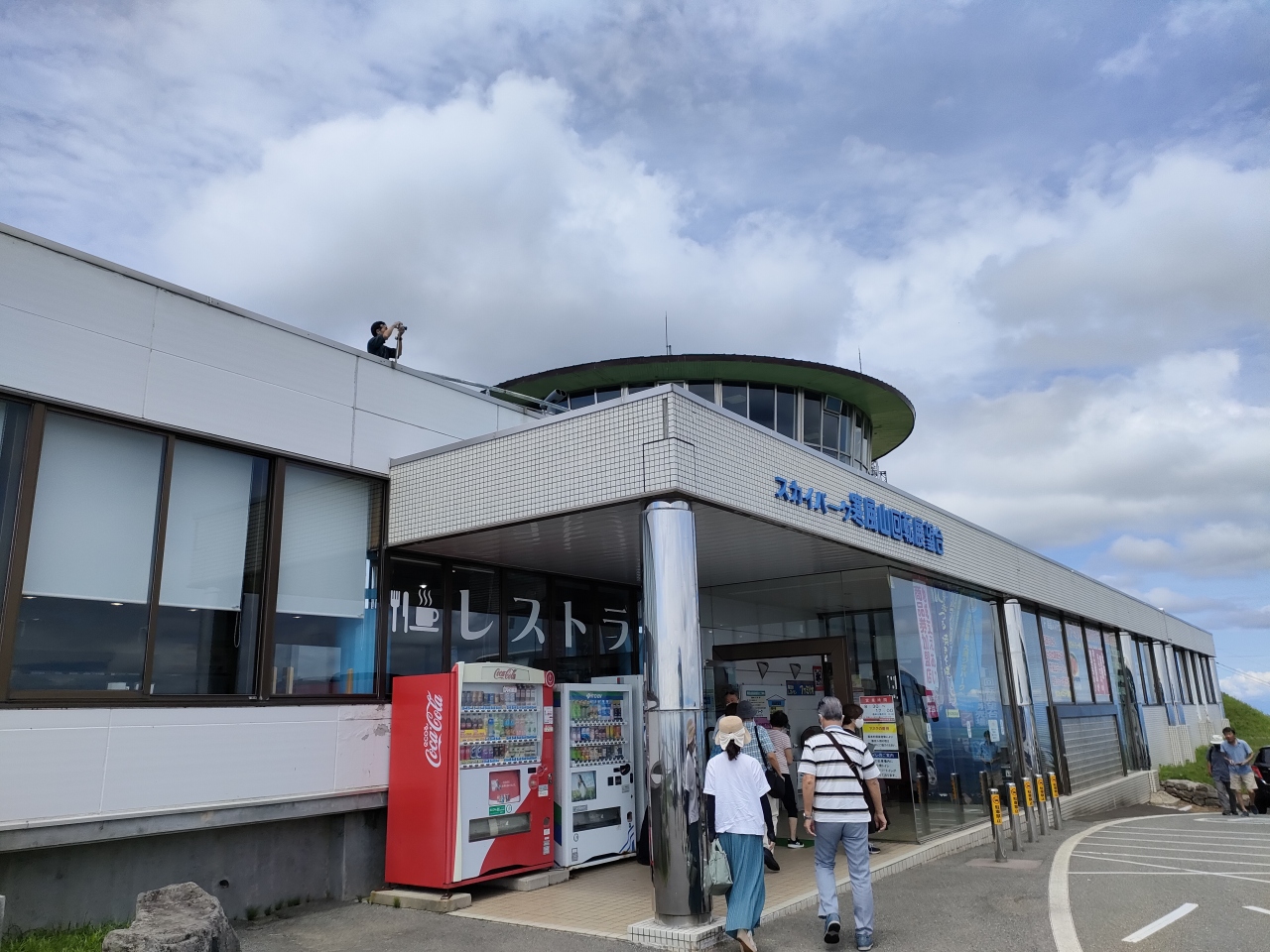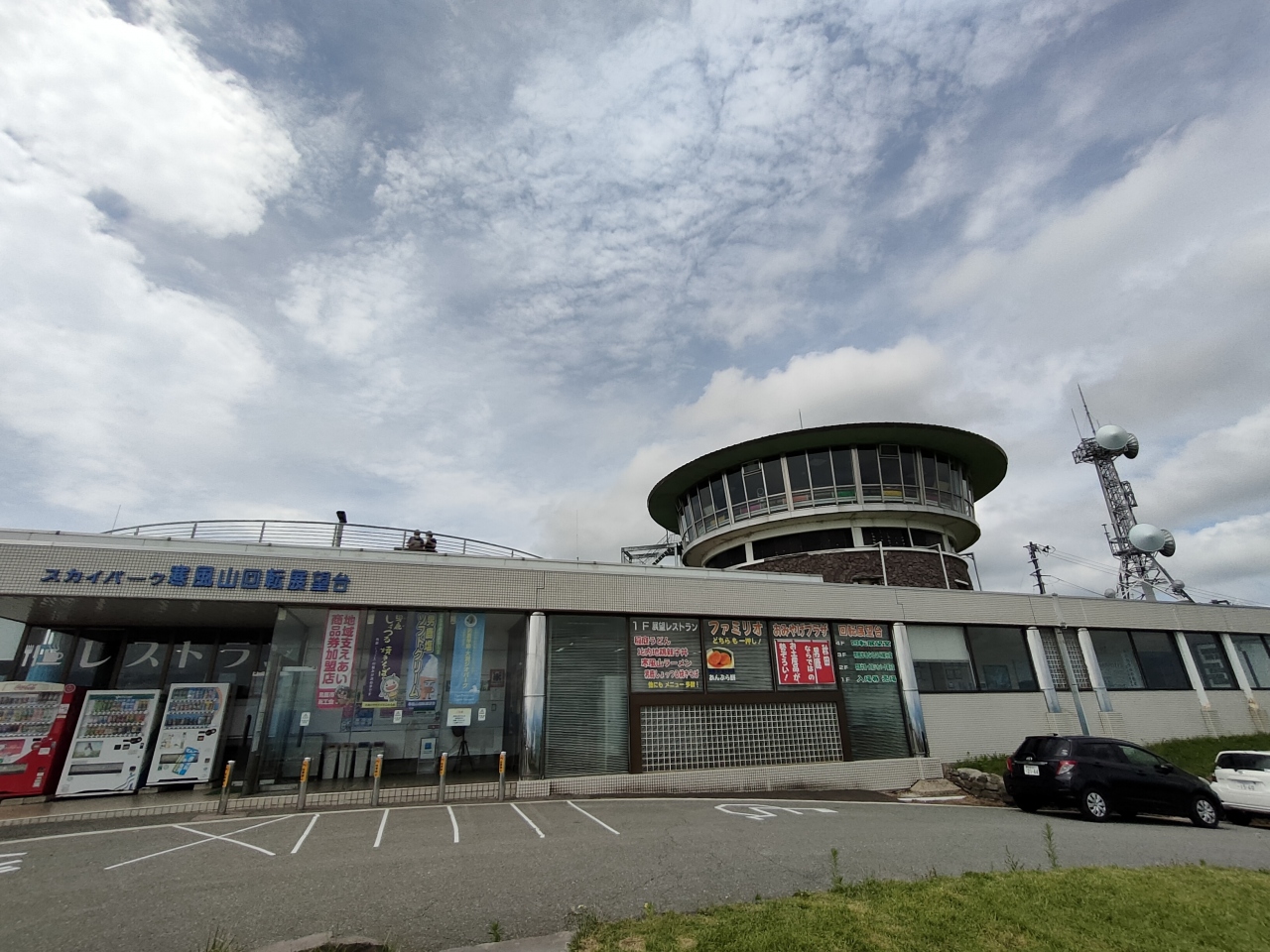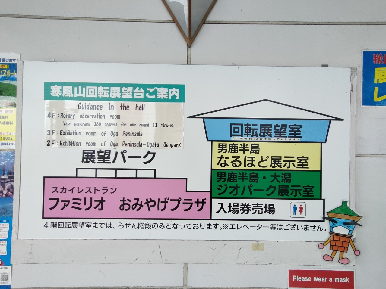 標高355mの寒風山山頂にある展望台で、建物の中がゆっくり回転していて、動かずして男鹿半島を360°見渡すことができます。