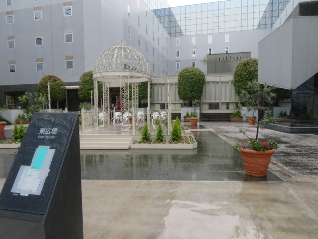 京都駅ビルの空中経路を降りたあたりにあるので、かなり上にあるので、存在は知られてないかもしれないですね。ヨーロッパ調のあずまやがあって、ここからだと、京都駅の曲線部分が間近に見えて、建築ファンが喜びそうな場所です。