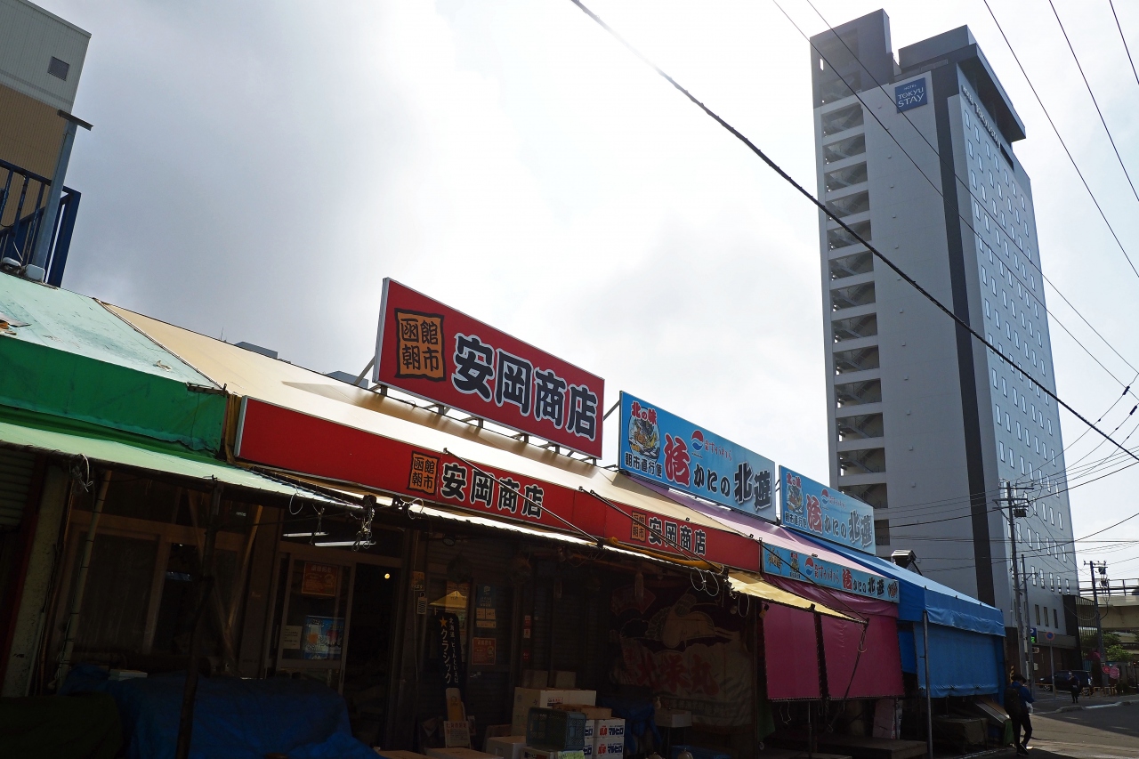 函館市場の奥にある東急ステイ函館朝市 灯の湯に宿泊したので何度も通過しましたが、時間帯によって随分活気の差があります。