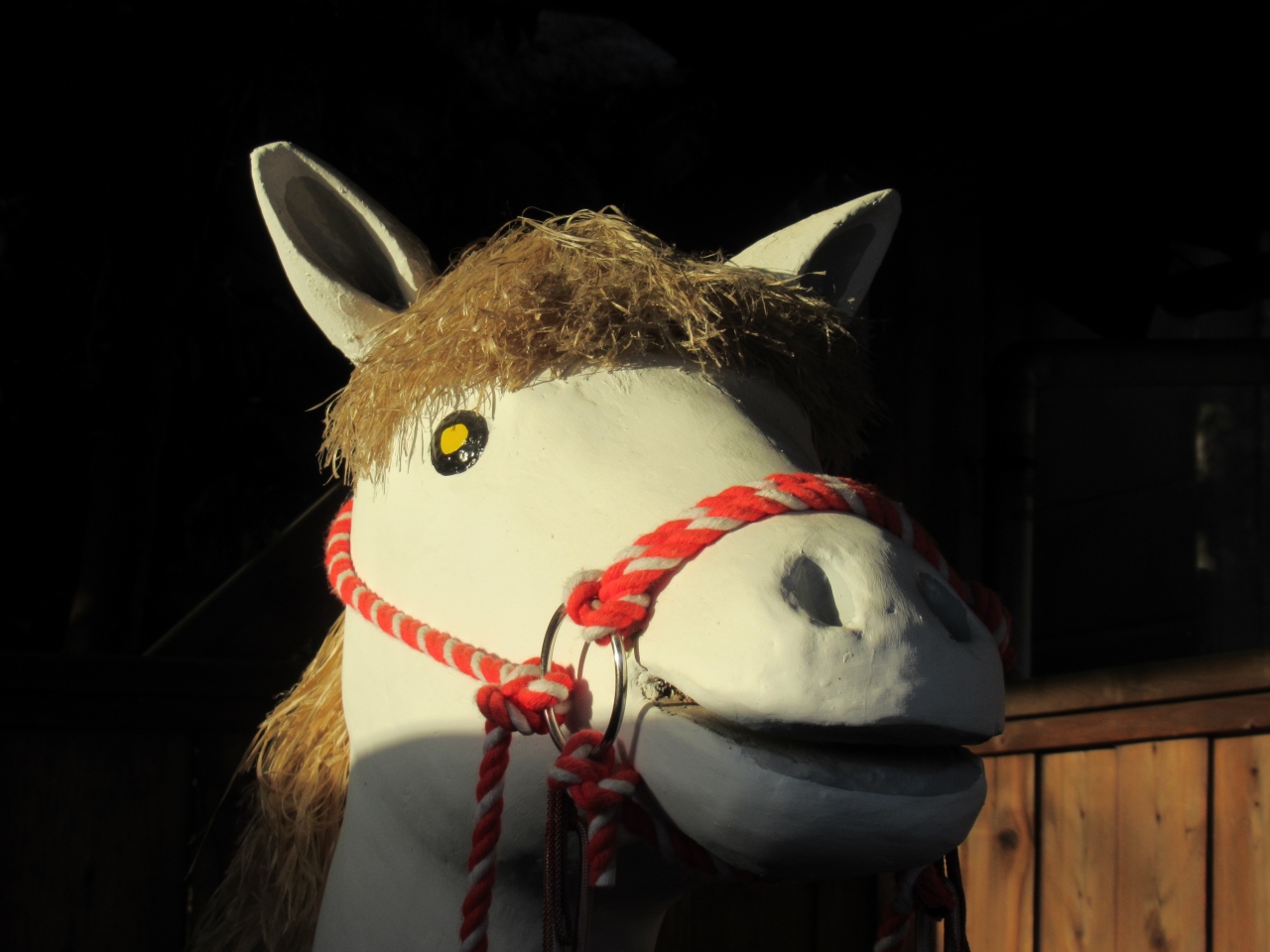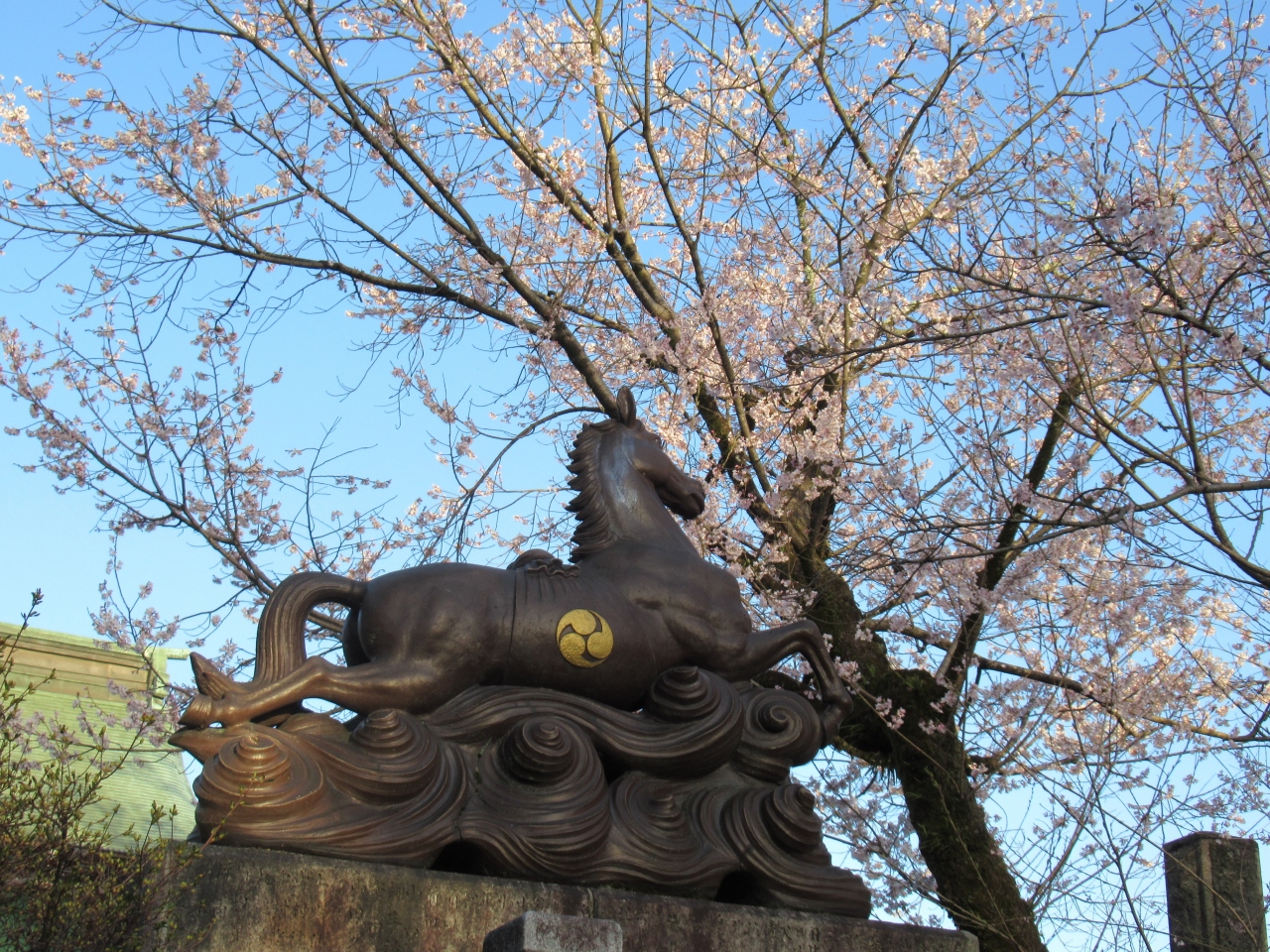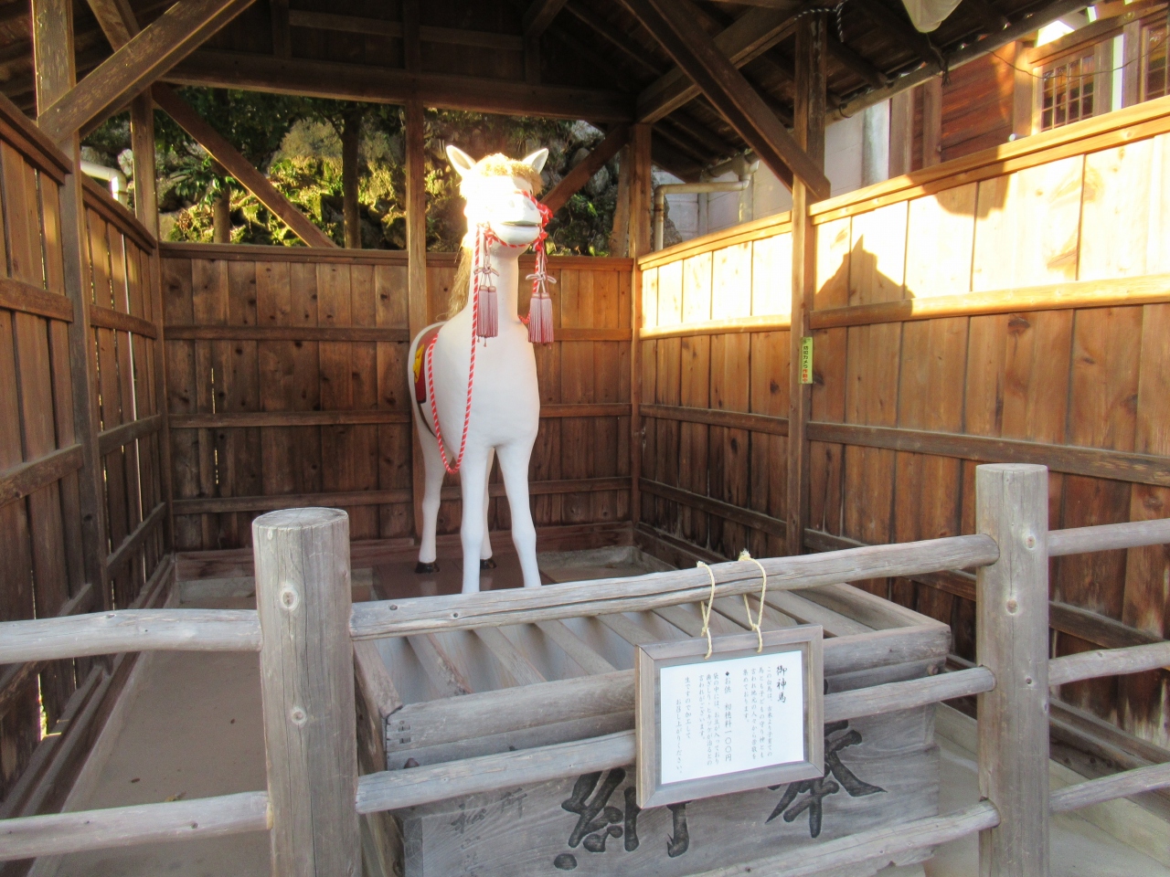 本殿西側にお祀りしている御神馬は、古くから子供の守り神、子育てのご神馬さまと親しまれ、お供えした豆を頂くと歯ぎしり、ひきつけが治ると伝えられているそうです。