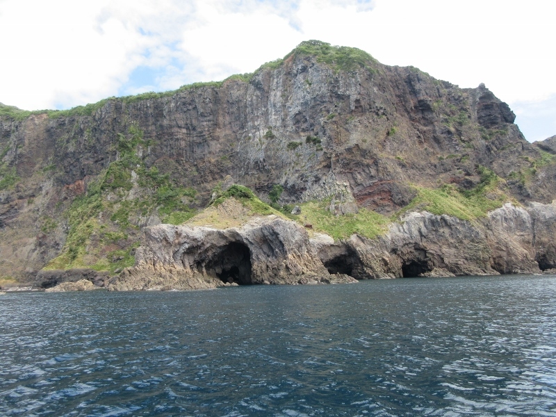国賀海岸めぐりの船に乗って、乙姫御殿の説明を聞きました。すると船が岩穴の中に入って行きました。船の幅とそれほど余裕はないので、スリルがあります。観光船で岩穴に入ったのは初めての体験でした。船長の腕の見せ所なのでしょう。