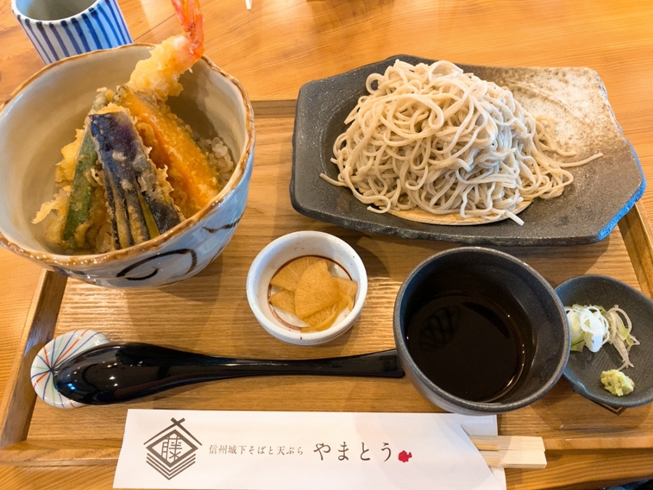 でも、待った甲斐のある美味しくて繊細なお蕎麦のミニ天丼を頂きました。 食後に食べた蕎麦プリンもちょっと不思議な味がしましたが美味しかったです!