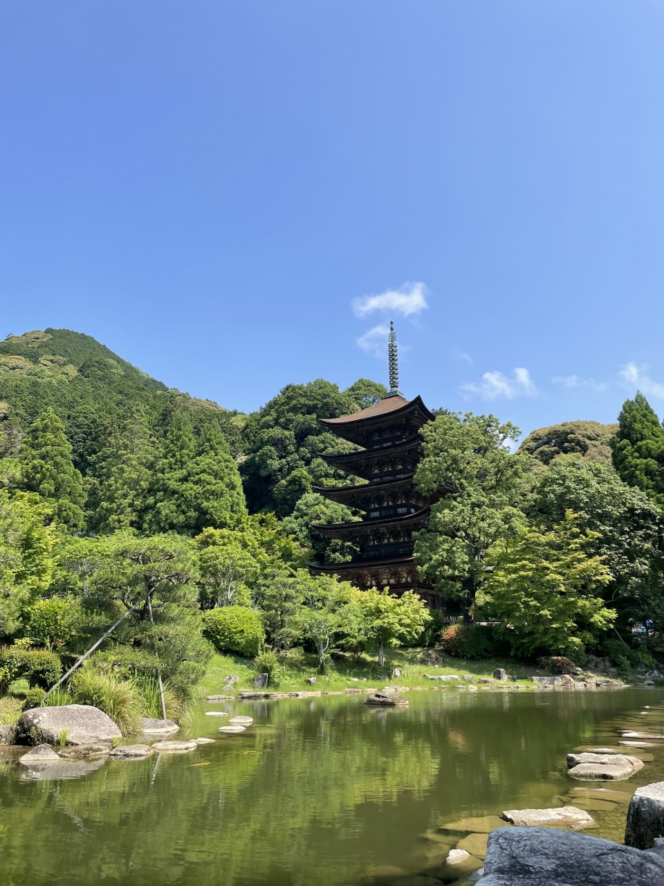 山口旅行の際に訪れました。香山公園内にあります。室町時代に建造された塔で、全国の五重塔のうち10番目に古いと言われているようです。檜皮葺屋根造りでとても美しいです。公園内の池や塔の周囲の木々と一体となった光景は本当に画になる光景です。