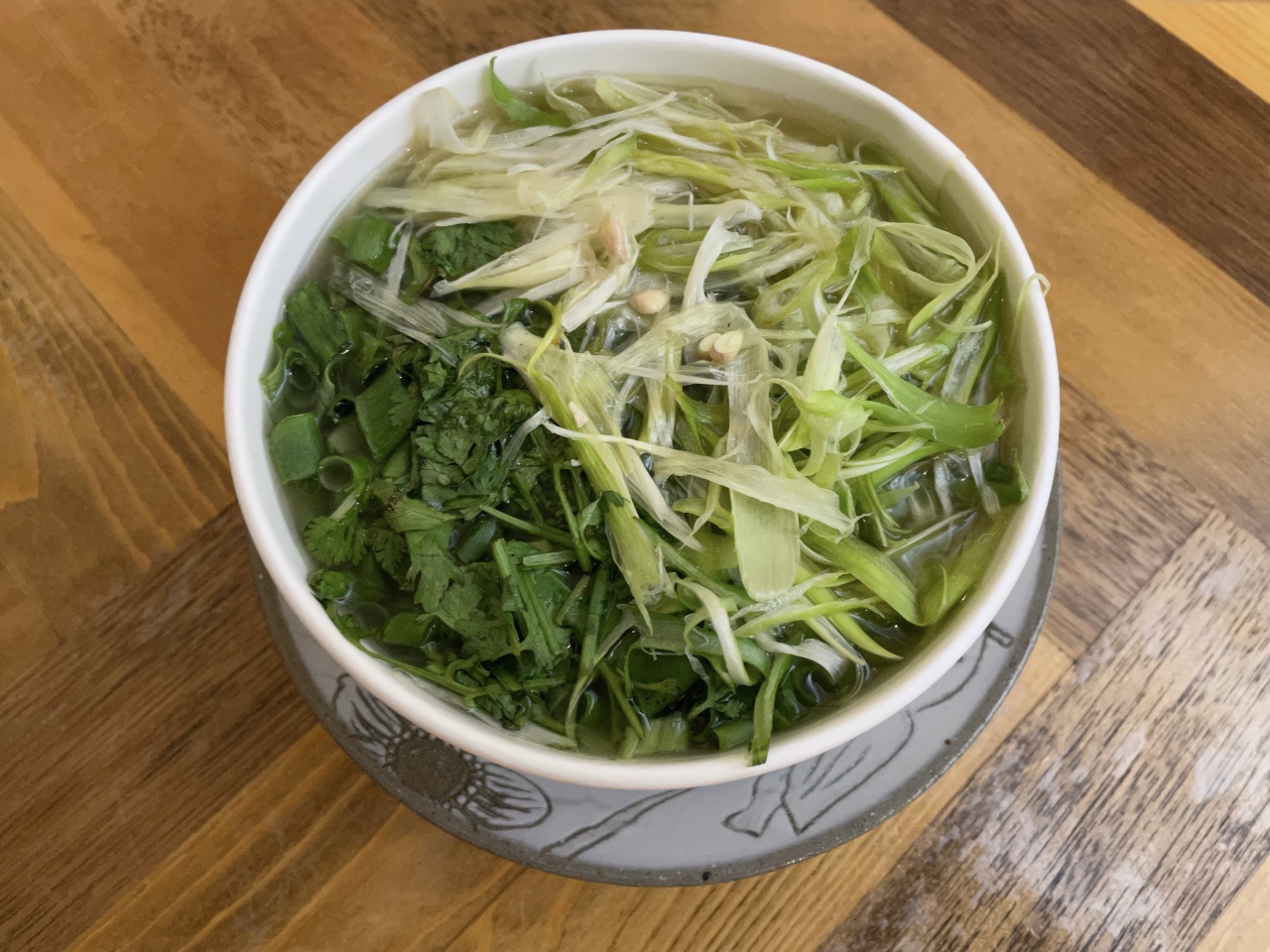 食べる際はスープを容器に入れてレンジでチンすれば出来上がり。パクチーもしっかり入っていて風味も良し。