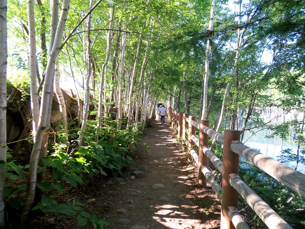 2022年7月21日の晴れた日にレンタカーで訪れました。広々とした有料駐車場(500円)があり、楽に駐車できました。平日だったにも関わらず、結構多くの車が駐車していました。駐車場から白樺林の中を歩いて行くと池に出ることが出来ます。池の水の色は、晴れていたにも関わらず、想像していたほどの鮮やかなコバルトブルーではなく、残念でした。雰囲気がいいところなので、紅葉のきれいで、人の少ないときに訪れた方がよかったかもしれません。