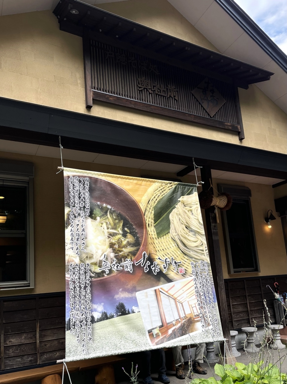 名物の戸隠そばがいただけますが、昼時だったので混んでいて店頭のノートに名前を書いて待つこと約15分