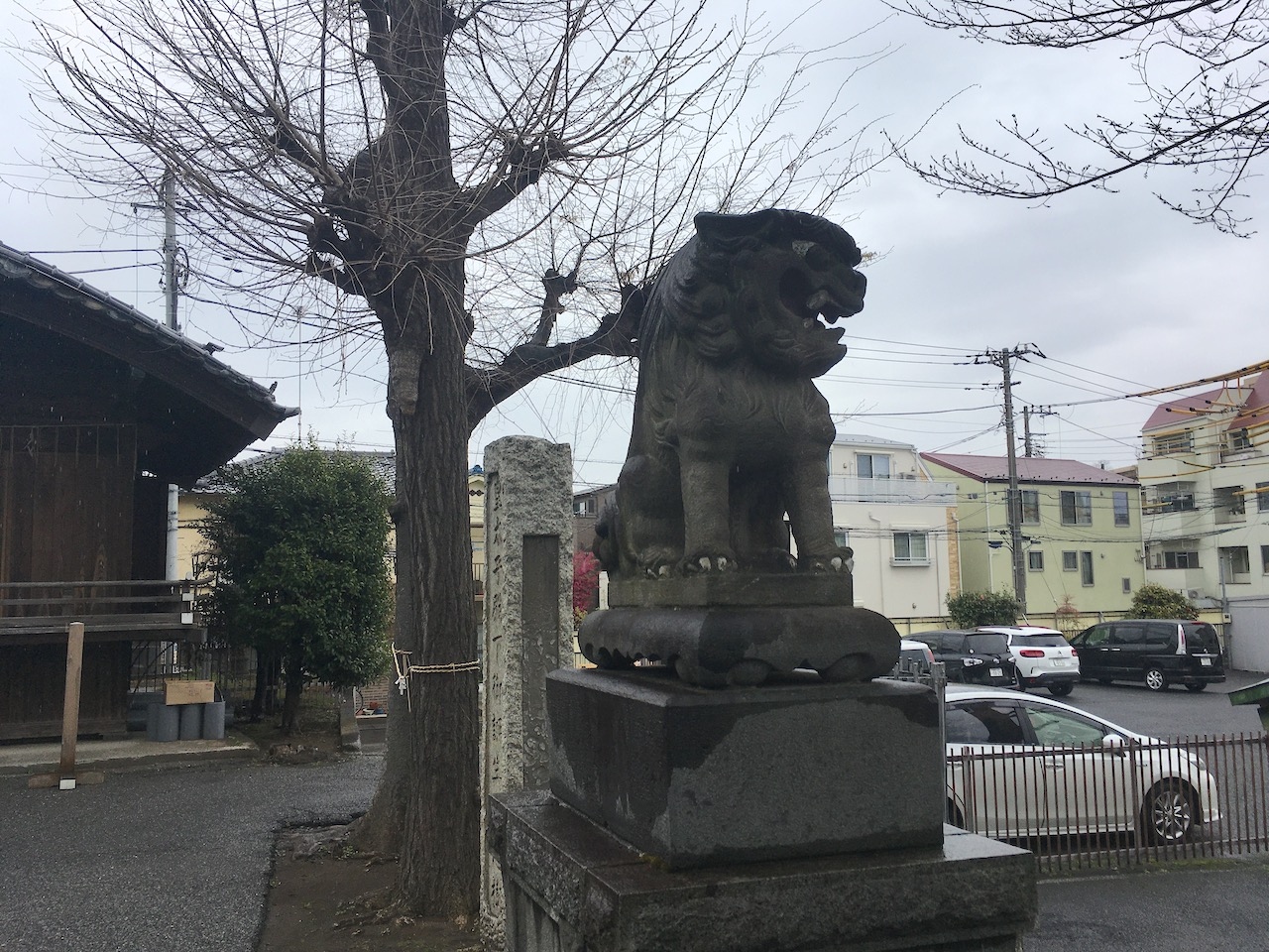 境内の各所で三つ巴の神紋が使われていますが、狛犬の尻尾も三つ巴になっていました。