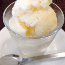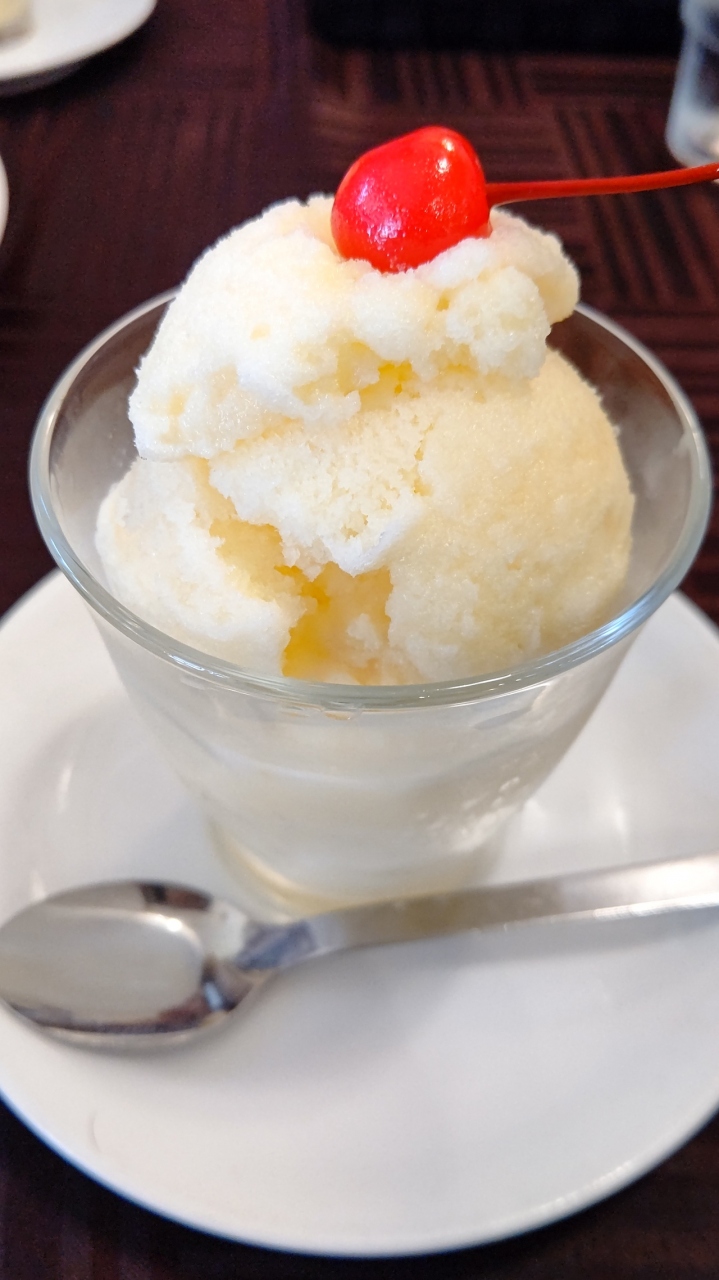 これはちょっと無理だと食事した人限定のハーフサイズにしました。こちらは甘過ぎずほどよい口溶けでほっとする味でした。