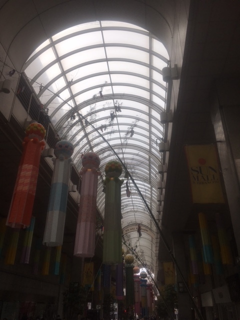 仙台の夏の風物詩「仙台七夕」の期間中のアーケード商店街は激混みなのは恒例ですが、今年の七夕飾りは、丈が短く、高い位置に飾られているものばかり(市の方針)。