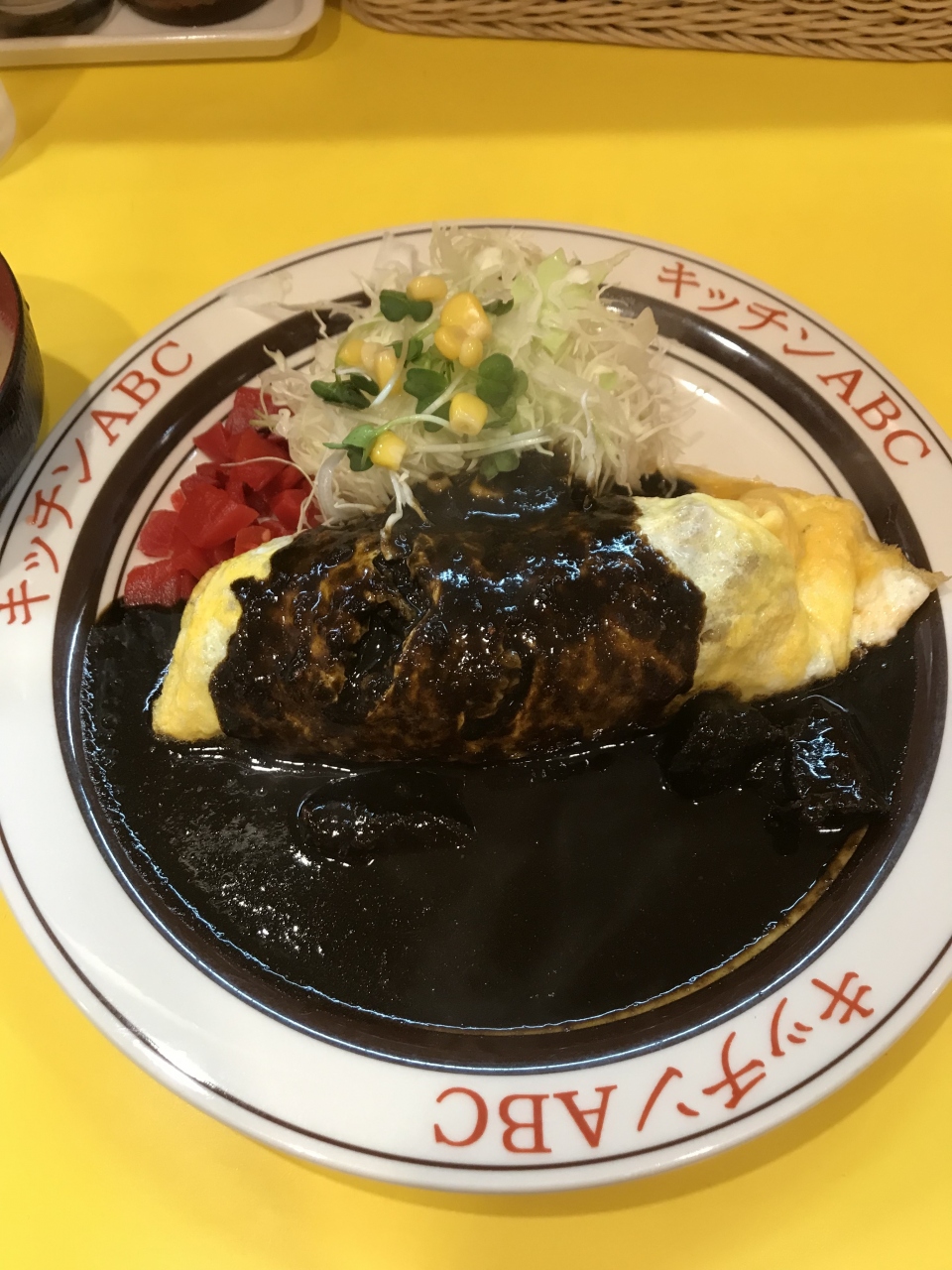 黒カレーがかかっていて、ややこってりめですが、スパイシーで非常に食がすすむ美味しさでした。