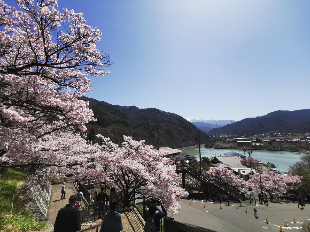 4月1週目に有名なさくら祭りに高遠城址公園に行きました。高遠城址公園は文字通り高遠城の跡地です。公園の南側から見下ろすと高遠ダムにせき止められた高遠湖が一望できます。満開のさくらと高遠湖はとても素晴らしいロケーションでした。高遠湖まで降りると歴史博物館などもあります。