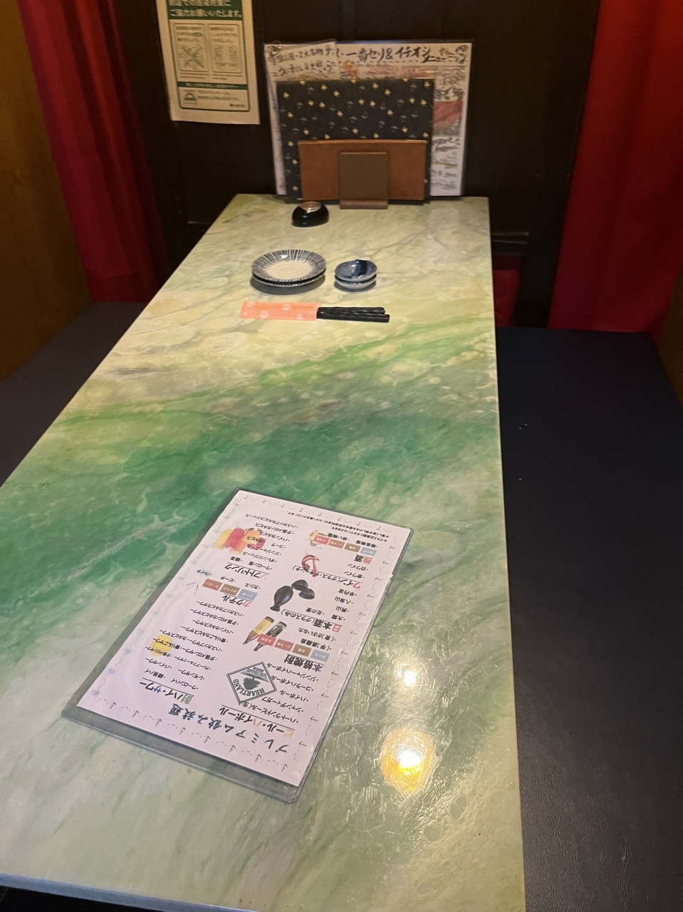 完全個室ではなく、パネルドア・アコーディオンドアの 仕切りの 席なので