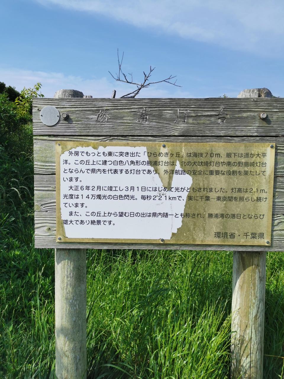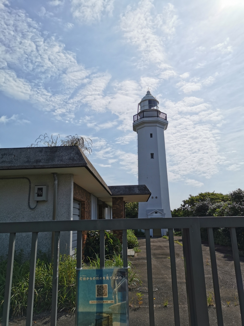 勝浦の八幡岬公園から、海沿いに狭い道路を通って行くと八幡岬 ひらめきヶ丘 勝浦灯台があります。狭い道ですが1.8車線はありますので離合に困ることはないです。勝浦灯台に駐車場はないのですが、道路沿いに2~3台は停められそうなスペースがあります。徒歩で1分歩くと勝浦灯台です。中には入れませんが、大正6年に建築されたとは思えない綺麗な灯台です。
